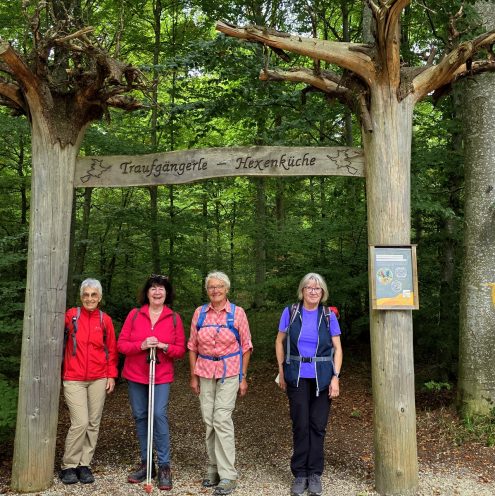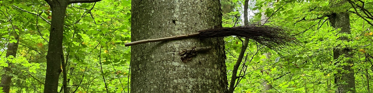 Das Traufgängerle war eine Teiletappe der Tour von Alfred und Christa am vergangenen Sonntag. Der Eingang und die ersten paar hundert Meter zeigen sich als Märchenwald mit schlängelden Pfaden. Ein Hexenbesen hoch oben weist den Weg. Für Wagemutige folgt der Hexenflug.