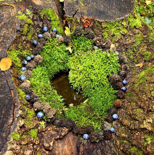 Ob mit Äpfeln, Eicheln, Schlehen, Blättern, Gräsern, Baumstümpfen oder Steinen. Alles war erlaubt. Diese Vielfalt ergab die unterschiedlichsten Interpretationen zum Thema.