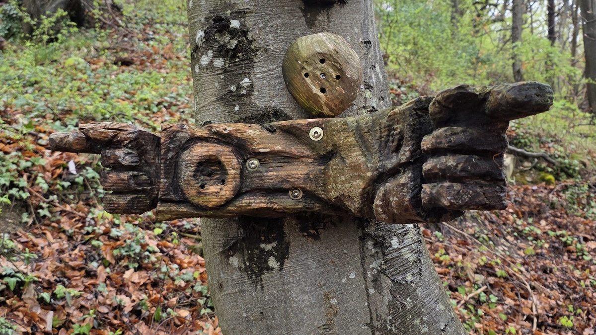 Für den Aufstieg über die alte Hofsteige mussten sie, je ein Remmsele in die offene Hand der Urschel legen. So geschützt ging es ohne Regen hinauf zum Emmenberg.