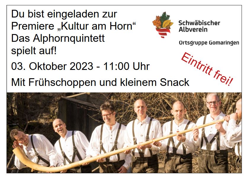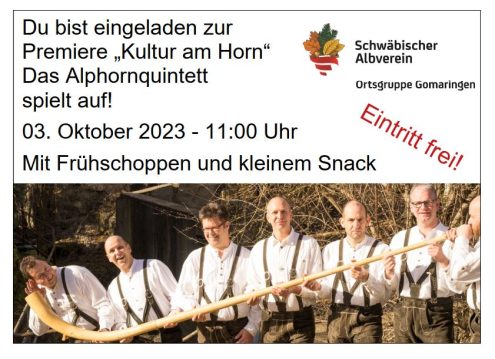 Kultur am Horn Di., 03.10.2023, 72810 Gomaringen Uhrzeit: 11:00 Ort: Horn Gomaringen Alteburgstraße 72810 Gomaringen iCalendar Mit dem Laden der Karte akzeptieren Sie die Datenschutzerklärung von Google.Mehr erfahren Karte laden Google Maps immer entsperren zur Übersicht